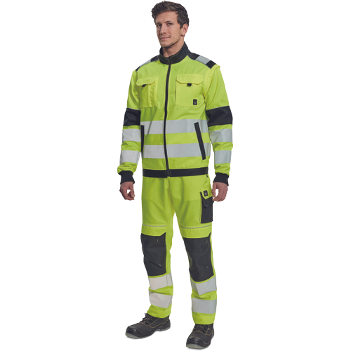 Pánská HI-VIS pracovní bunda se zapínáním na zip; odepínatelné rukávy; 2 přední kapsy, 2 náprsní kapsy.