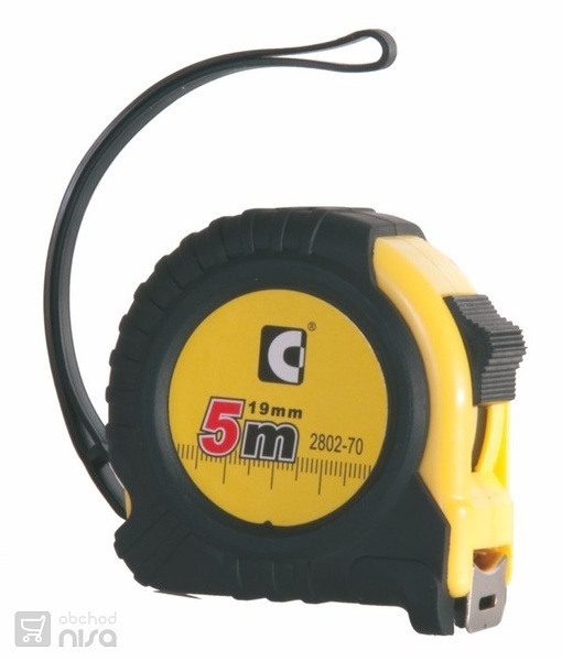 Kovový svinovací metr v plastovém pouzdře se zarážkou a poutkem.