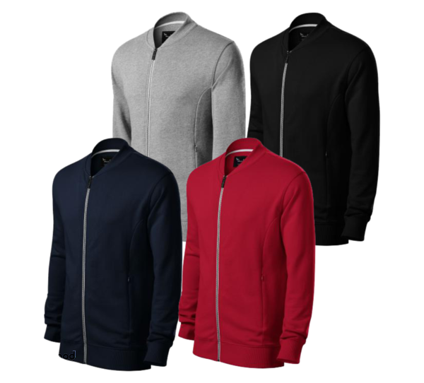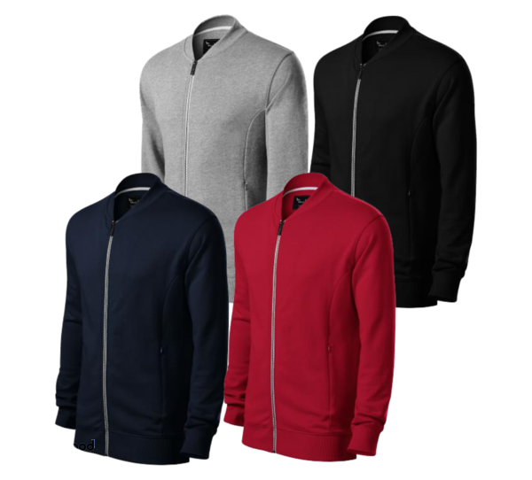 Ležérní celopropínací mikina ve stylu "bomber" s kontrastními prvky.