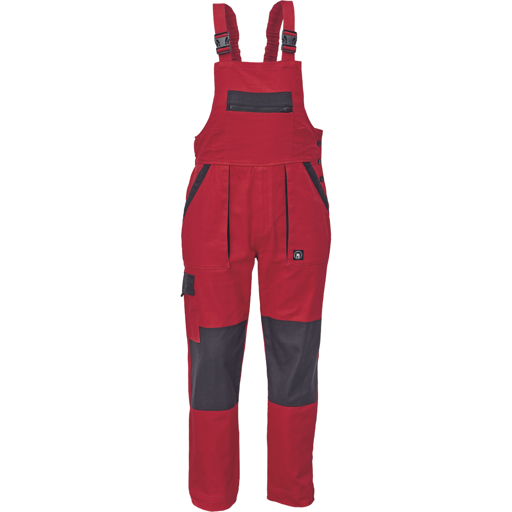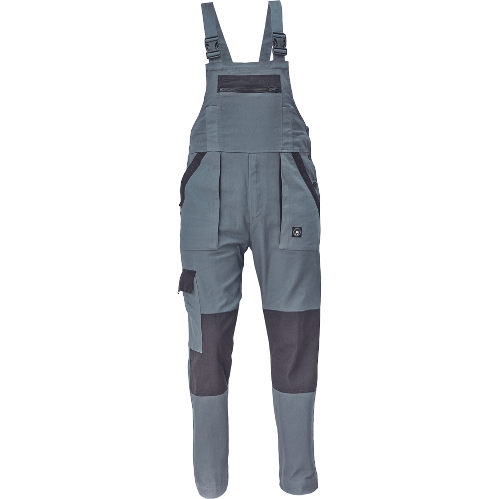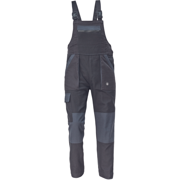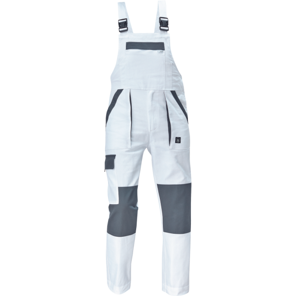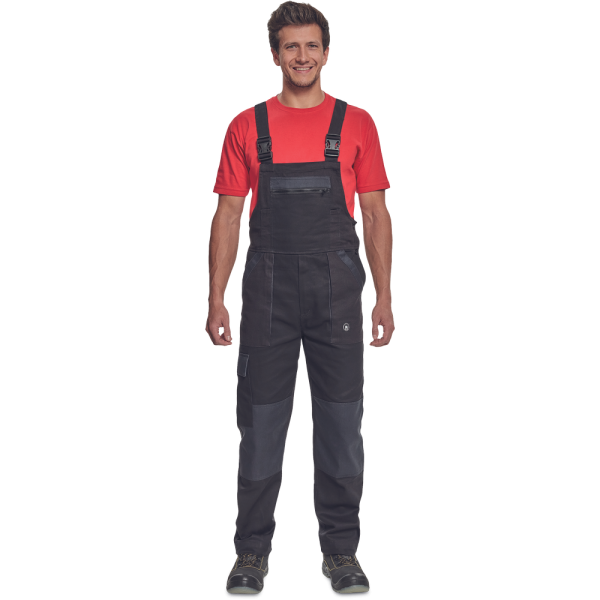 Pánské pracovní kalhoty s laclem a elastickým pasem.
