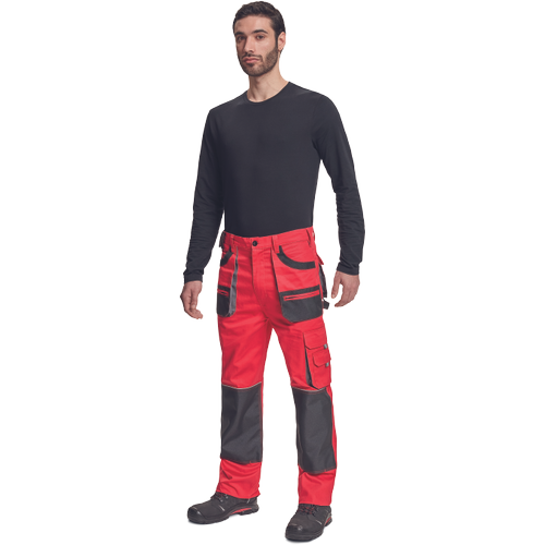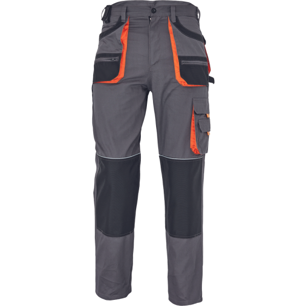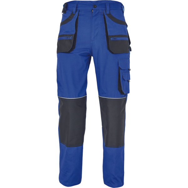 Pánské bavlněné pracovní kalhoty; 6 funkčních kapes; polyester Oxford zesílení v kolenních částech s možností vkládání ochranných nákoleníků.