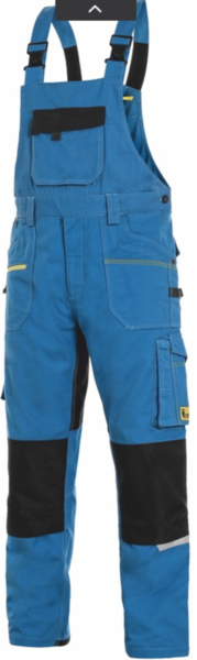 Pánské montérkové kalhoty s náprsenkou - zkrácená varianta na výšku 170-176 cm. Strečová tkanina umožňující volný pohyb, náprsní kapsa s klopou, pas s poutky na opasek, přední kapsy s kapsou na zip.