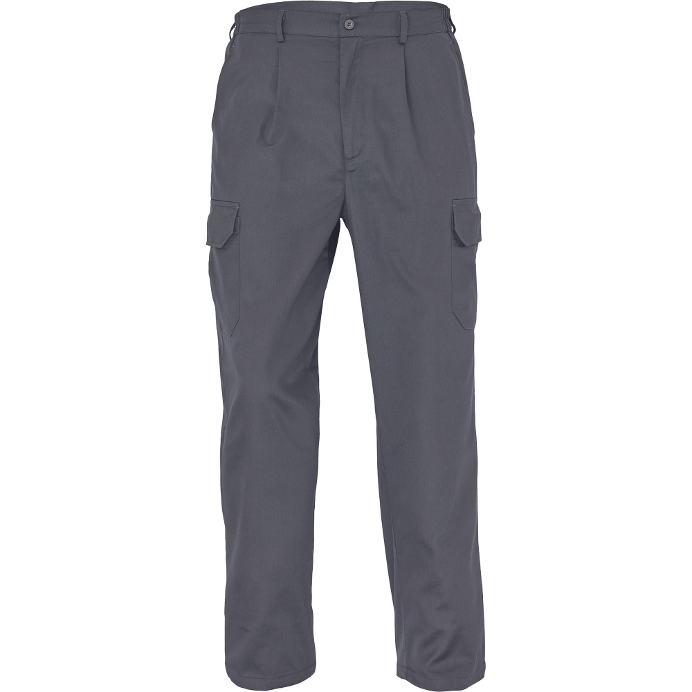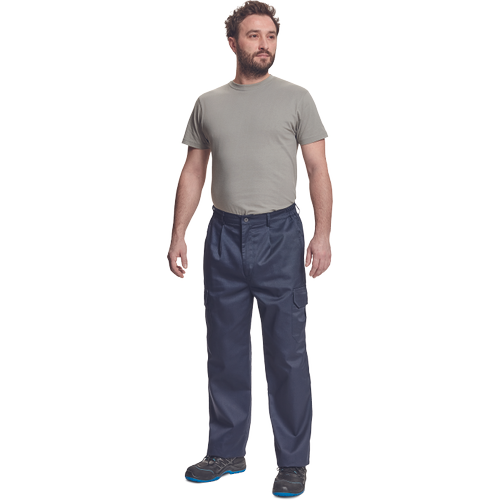 Pánské pracovní kalhoty s pružným pasem; 2 postranní kapsy; 2 stehenní kapsy s klopou na suchý zip.