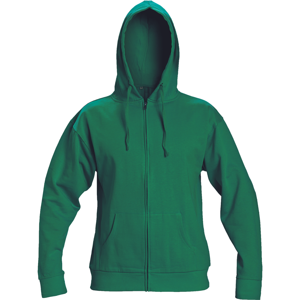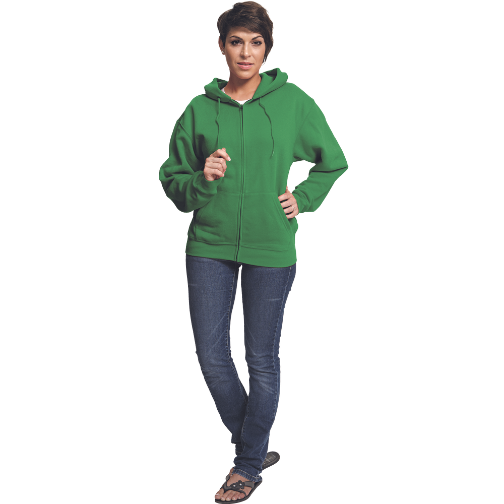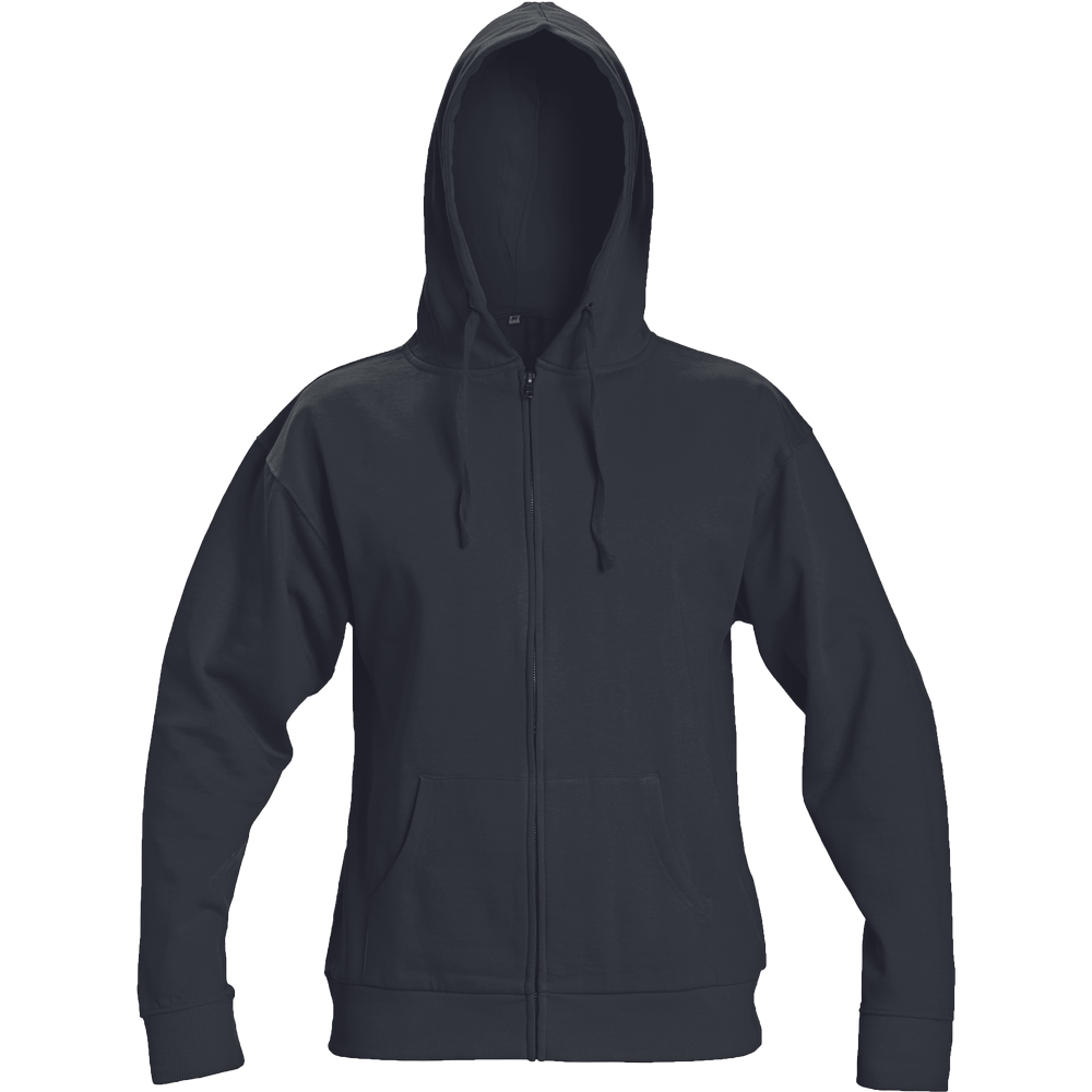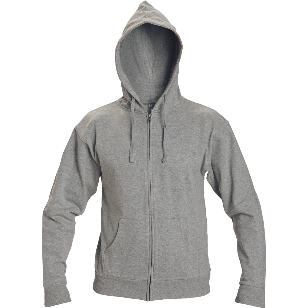 Unisex mikina se stahovatelnou kapucí; celopropínací s kovovým zipem; vnitřní strana počesaná; 2 přední kapsy.
