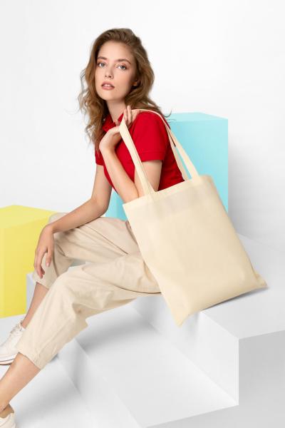 Středně velká nákupní taška z netkané textilie. Dostupná alternativa k igelitovým taškám. Chraňme společně přírodu. Křížové prošití popruhů pro vyšší odolnost.