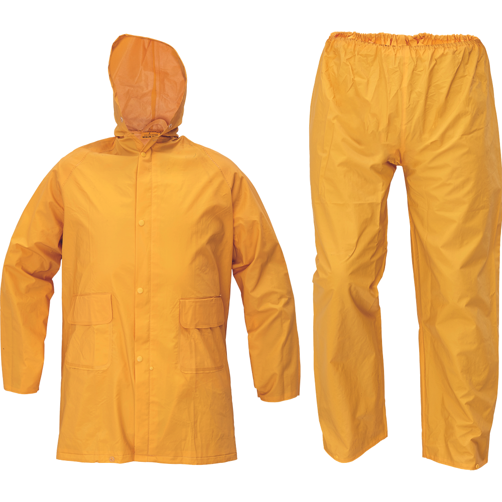 Pracovní nepromokavý oblek Hydra, dvoudílný, s kapucí a kalhotami do pasu. Vhodné pro stavebnictví, zemědělství, volný čas, průmysl a dopravu. Slouží jako ochrana proti klimatickým vlivům. Zapínání nepromokavého obleku na druky, kapuca a pas s možSpecifikace pro Oblek s kapucí HYDRA žlutá