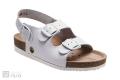 Pohodlný vycházkový zdravotní pantofel SANTÉ s anatomicky tvarovanou stélkou, která podepírá příčnou i podélnou klenbu, čímž zabraňuje vzniku ploché nohy. Pantofle značky SANTÉ jsou velmi pohodlné a dodávají noze potřebný komfort i při dlouhodobém nošení. Jsou určeny jako zdravotní , pracovní, domácí či vycházková letní obuv. Je vyroben z kůže v bílé barvě a prodává se ve velikostech 35-48.