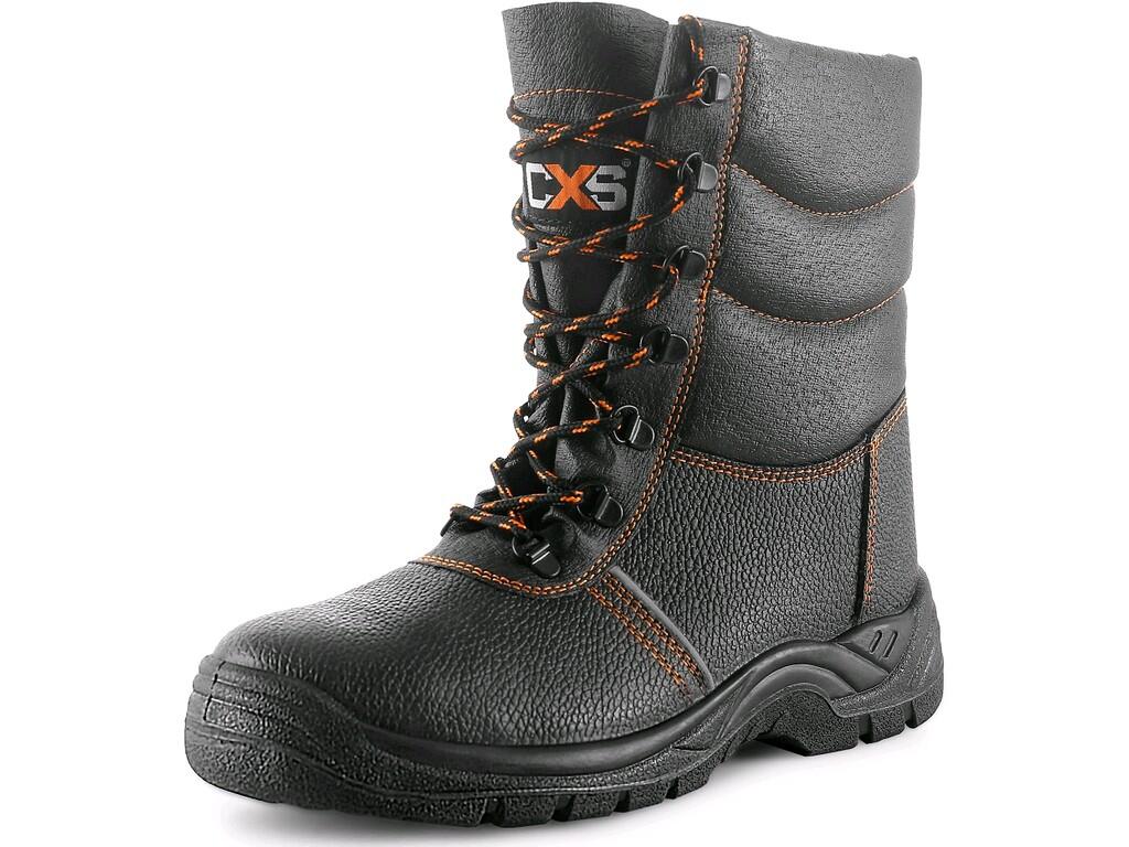 Poloholeňová zimní obuv , celokožená s ocelovou špicí a  planžetou.