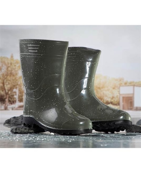 Pracovní holínka. Absorpce energie v patní části. Protiskluzová, antistatická, olejivzdorná podešev.
