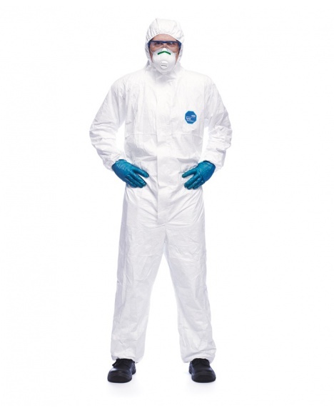 Jednorázový ochranný oblek s kapucí, antistatický, bez silikonů, kat. III, typ 5B,6B. Splňuje ochranu oproti virům