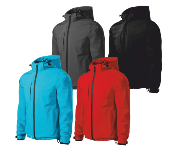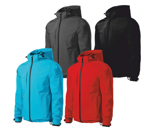 voděodolný zip zakončený krytkou brady, odnímatelná kapuce s vyztuženým kšiltem, kapuce a dolní lem na stažení elastickou šňůrkou, lemy rukávů nastavitelné suchým zipem, lištové kapsy s reverzním spirálovým zipem, náprsní kapsa, podlepené švy, vstup pro branding v bočním švu podšívky, tvarovaný a mírně prodloužený zadní díl, kontrastní prvky