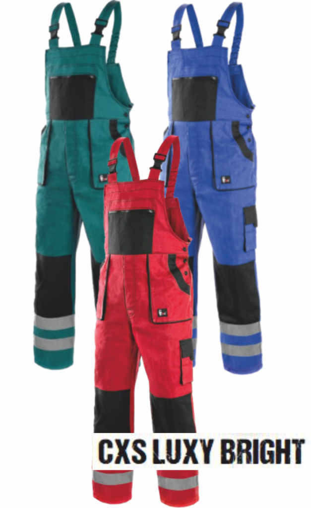 Pánské montérkové kalhoty CXS LUXY BRIGHT s náprsenkou a reflexními pruhy.
