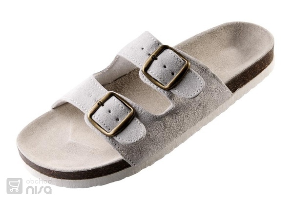 Korkové pantofle s podrážkou z pěnové pryže a koženým svrškem.