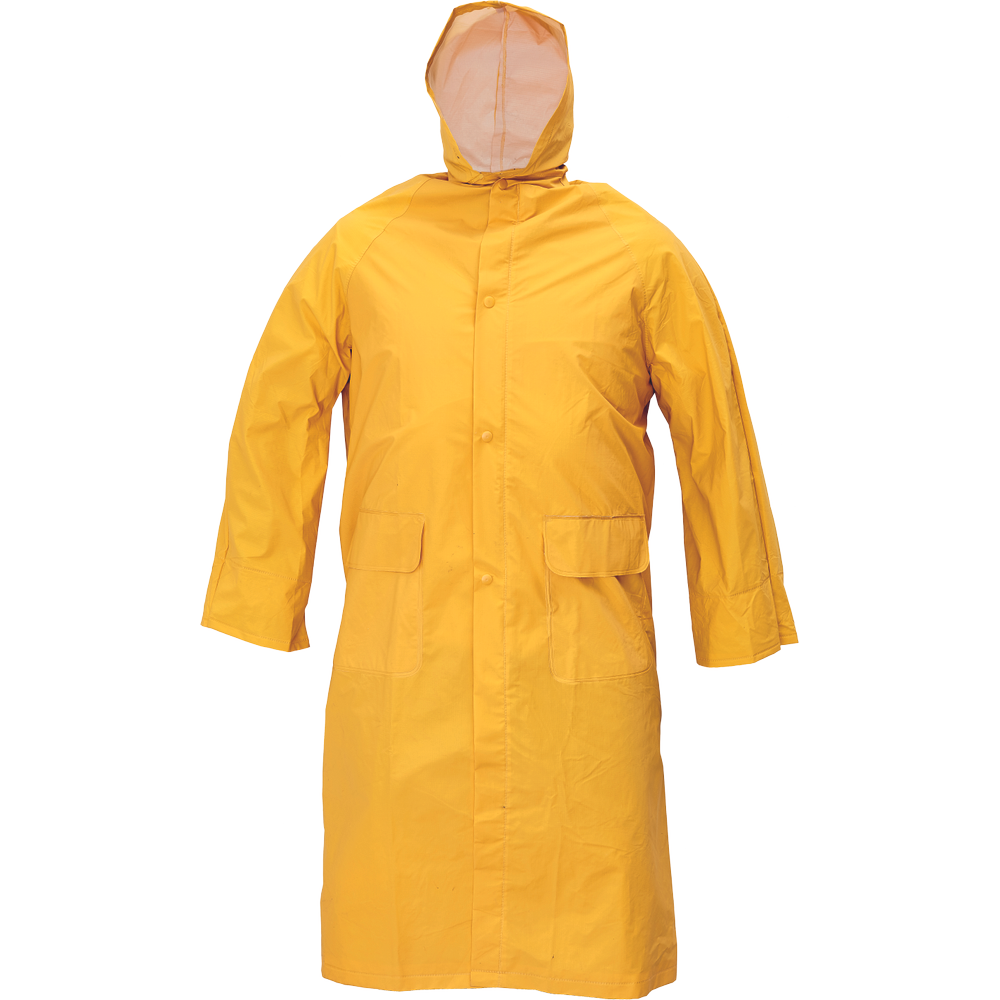 Ochranný pracovní plášť s kapucí, PVC/polyester/PVC 0,32 mm, ochrana proti vodě a klimatickým vlivům.Najděte svoji velikost