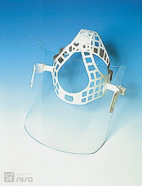 Ochranný štít o velikosti 220x290 mm z čirého PMMA tl. 2 mm je typem štítu s náhlavním nosičem.