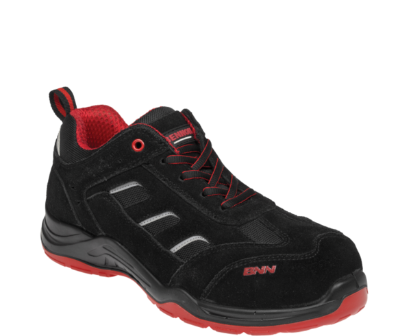 BENNON® REBEL - Moderní bezpečnostní polobotka se vzdušným kombinovaným svrškem z veluru a nylonu na nástřikové podešvi PU/PU, vhodná pro práci v suchém venkovním i vnitřním prostředí.