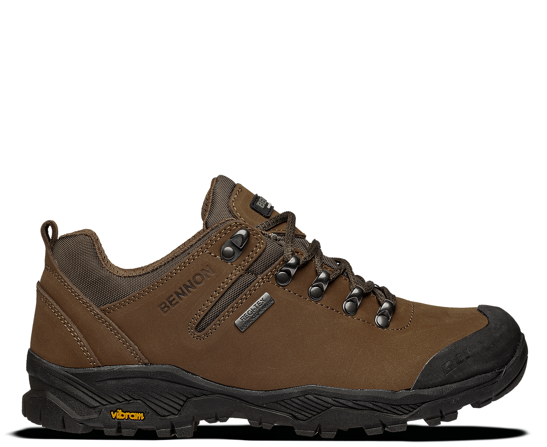 BENNON® TREK - Vyšší celokožená trekingová obuv s pohodlným systémem rychlého šněrování vybavená voděodolnou membránou REGI-TEX® a celopryžovou podešví Vibram®.
