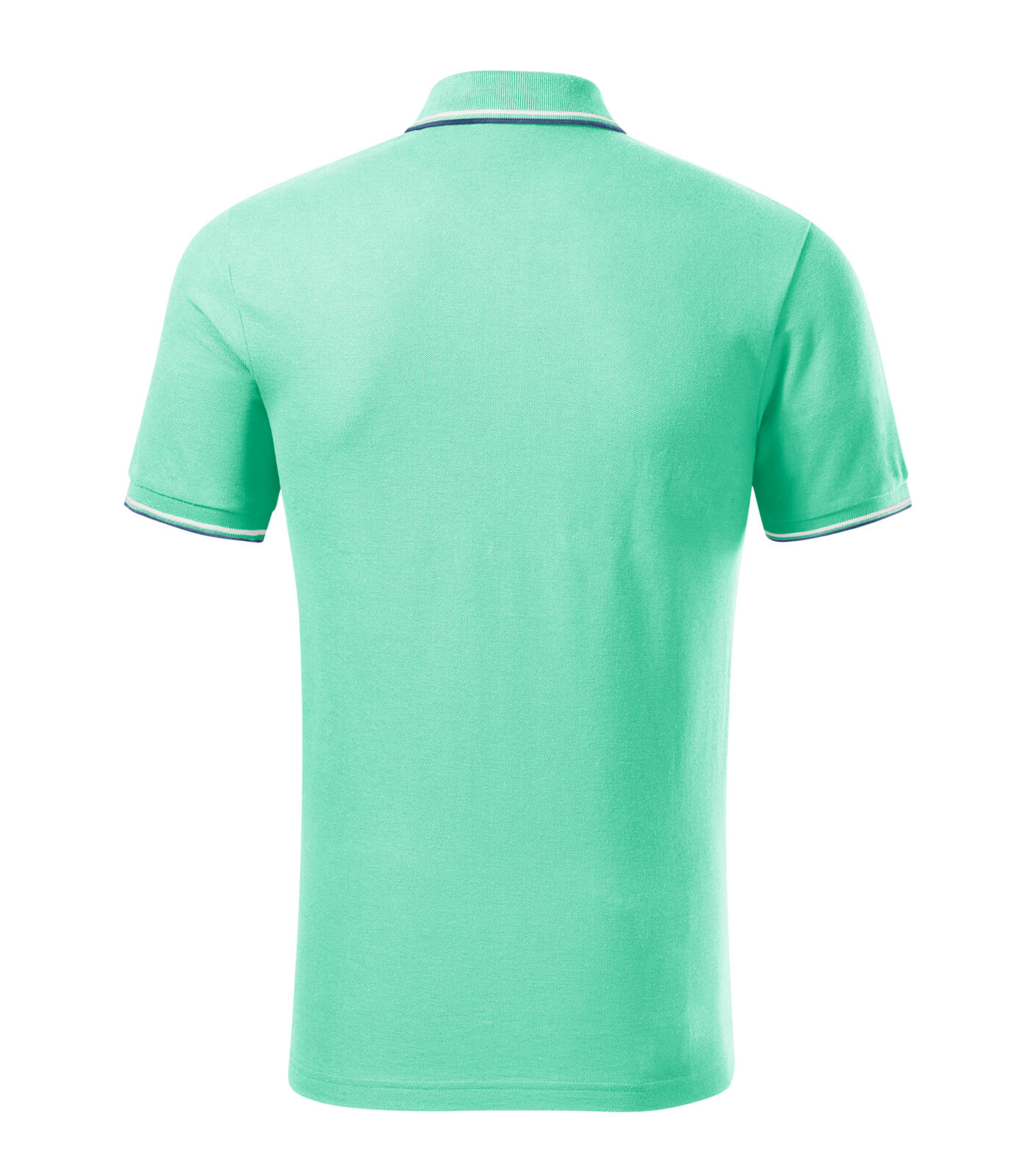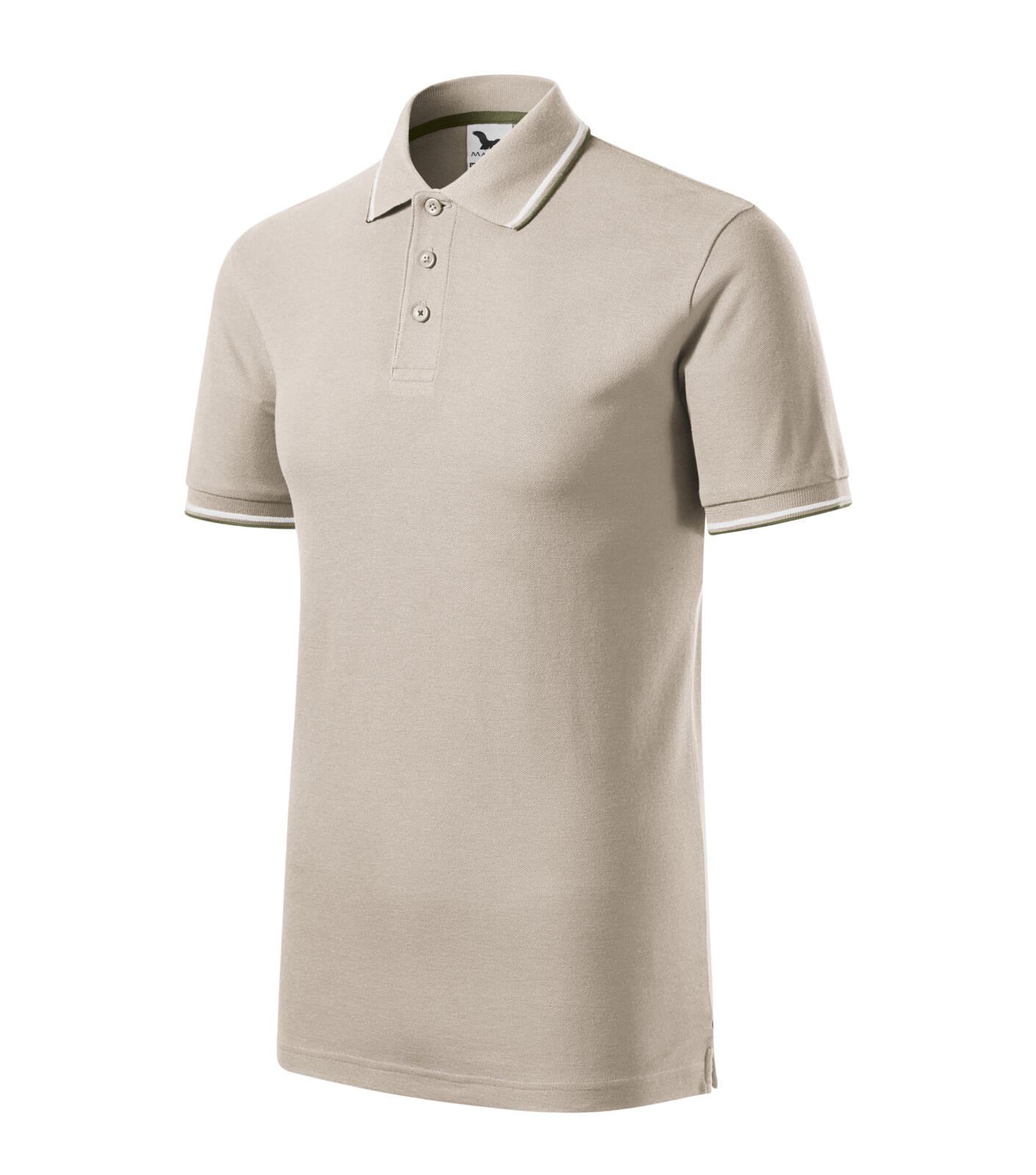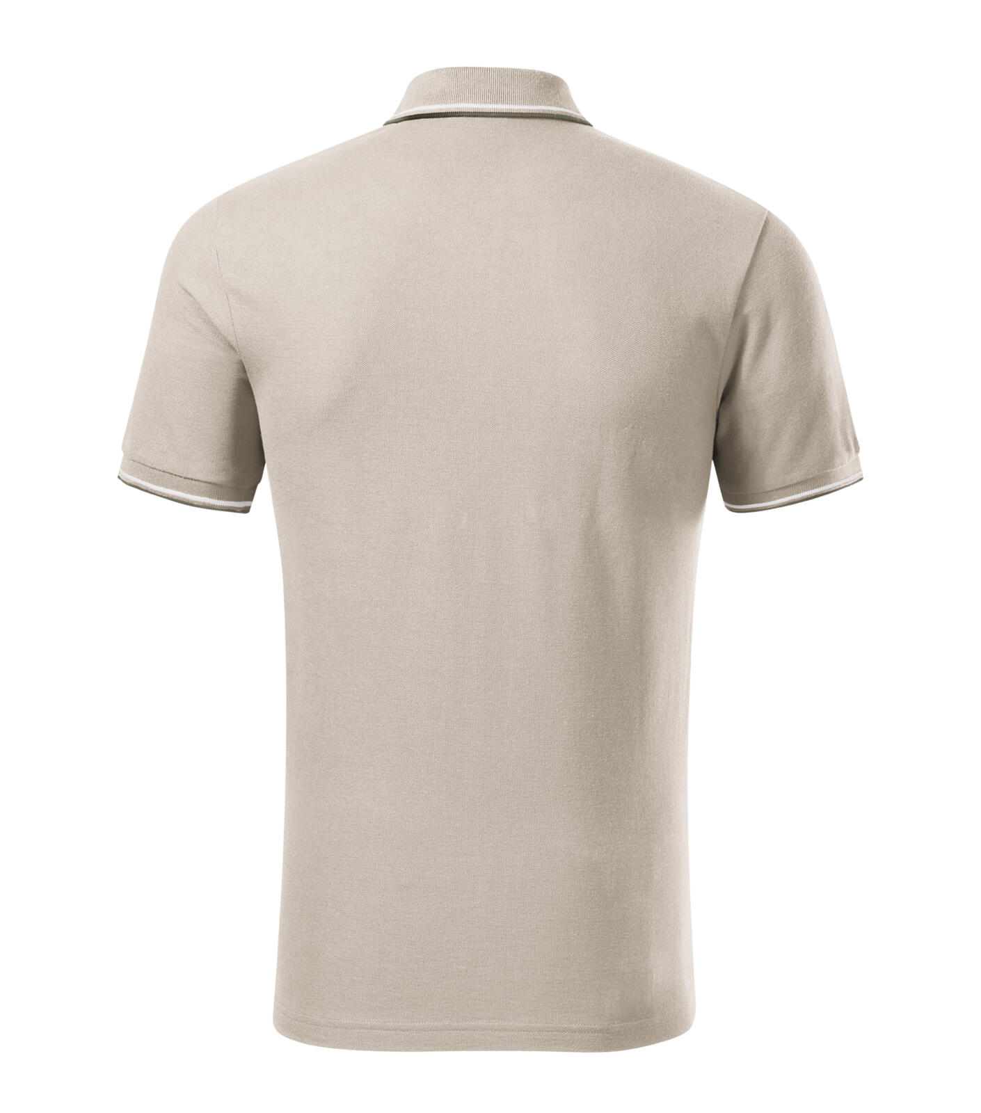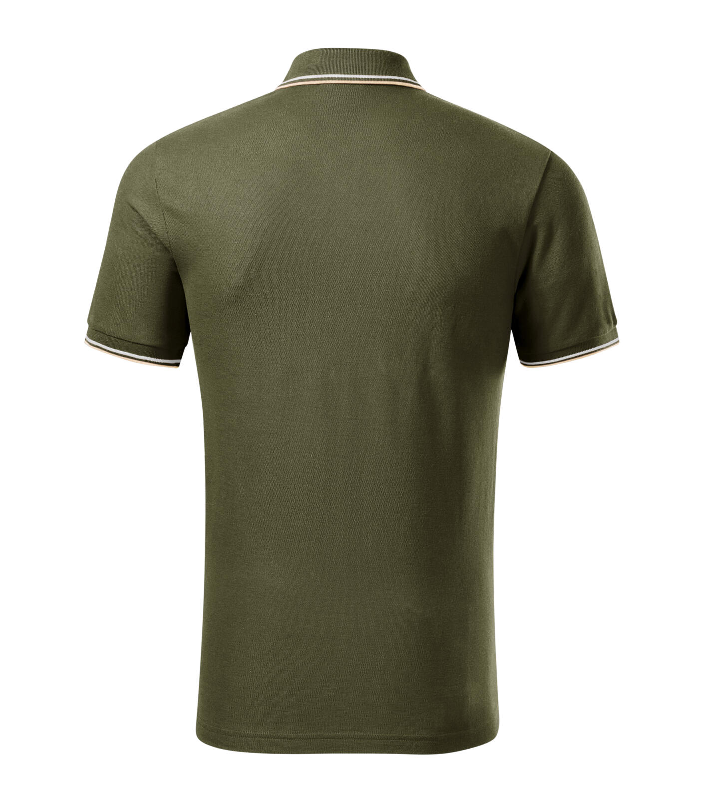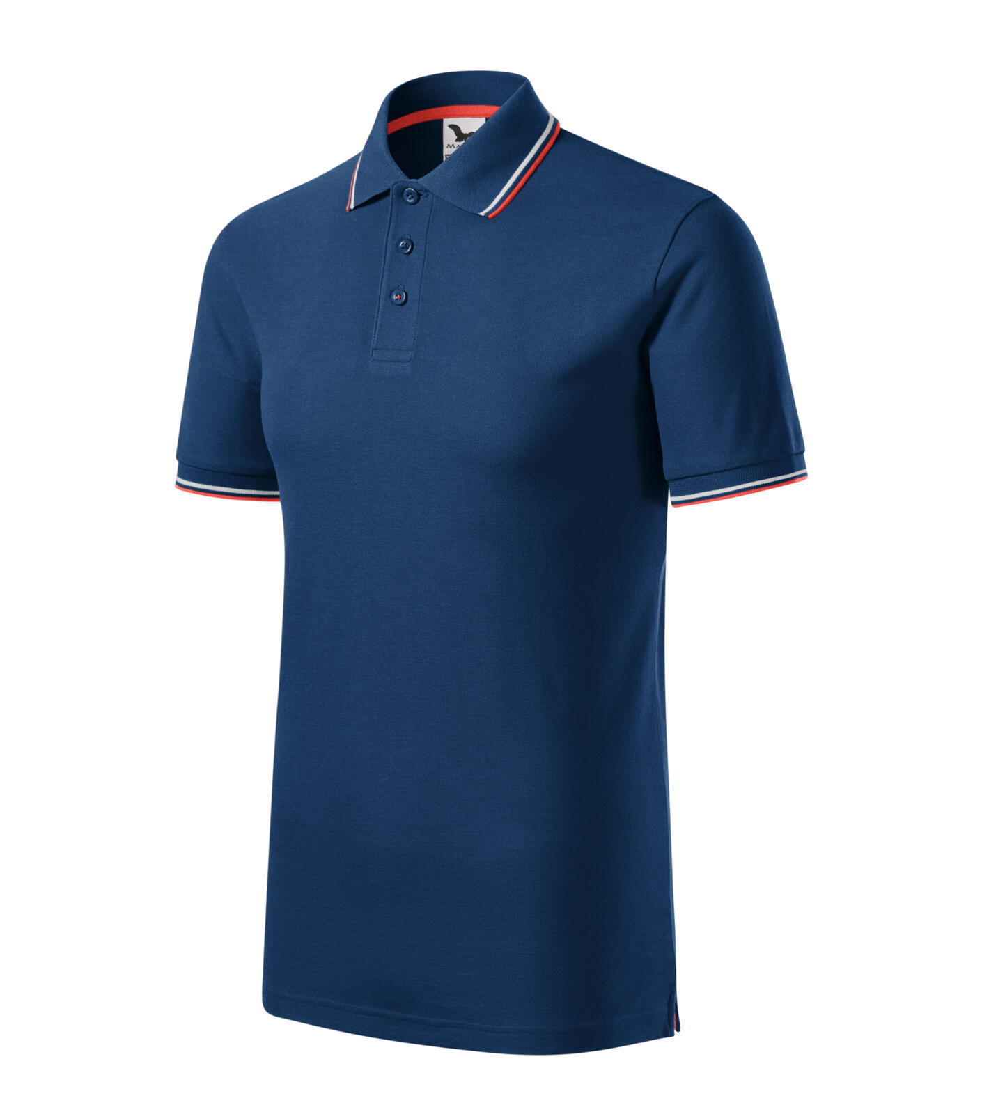 Tričko má střih s bočními švy, což zajišťuje pohodlné nošení a univerzální padnutí. Límeček je vyroben z žebrového úpletu 1:1 a zdobí jej 2 kontrastní proužky, které dodávají tričku moderní a atraktivní vzhled.