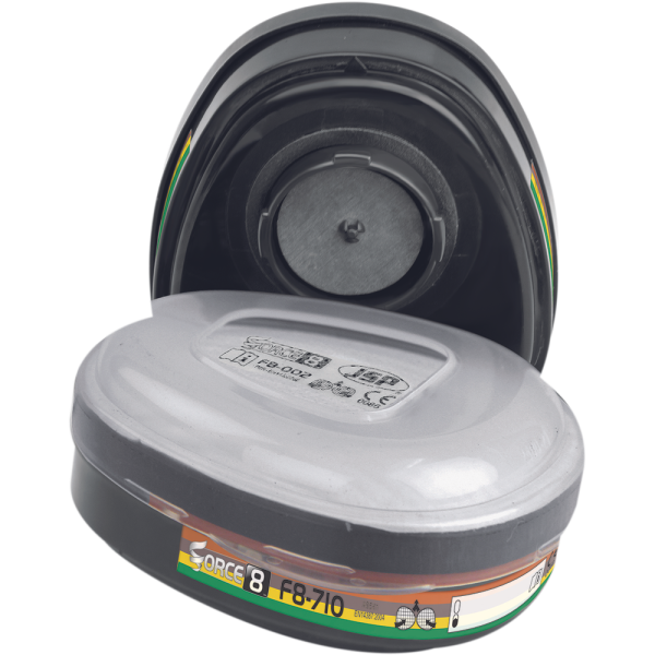 Force8 - polomaska se dvěma kazetami pro filtry (filtry nejsou součástí balení), ventilem typu Typhoon s minimálním odporem a čtyřbodovým postrojem s rychloupínacími přezkami.