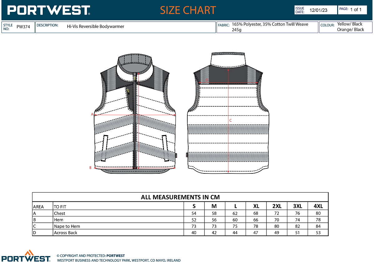 Základní informace pro PORTWEST Oboustranná vesta PW3 Hi-Vis