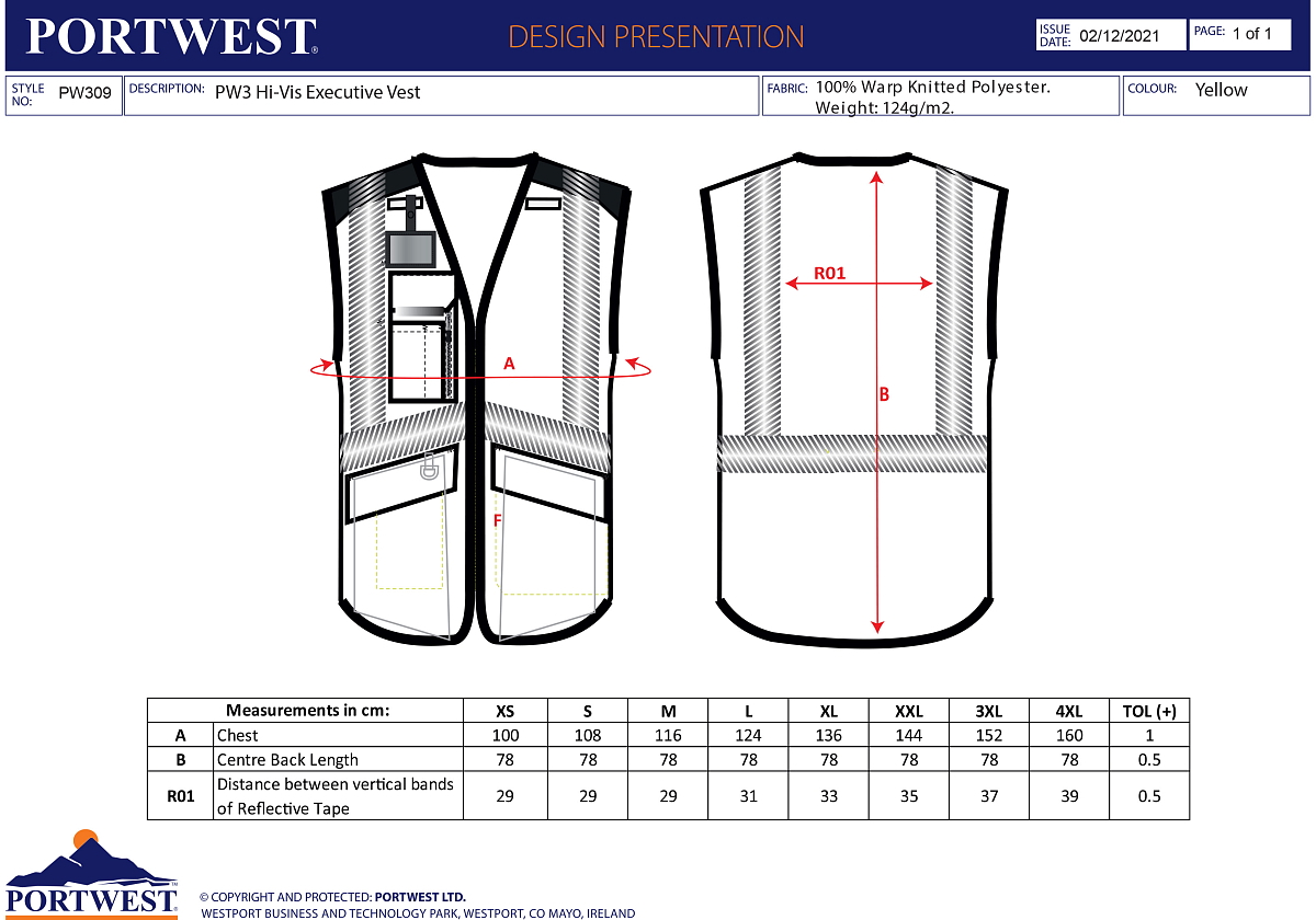 Specifikace pro PORTWEST Reflexní vesta PW3 Executive