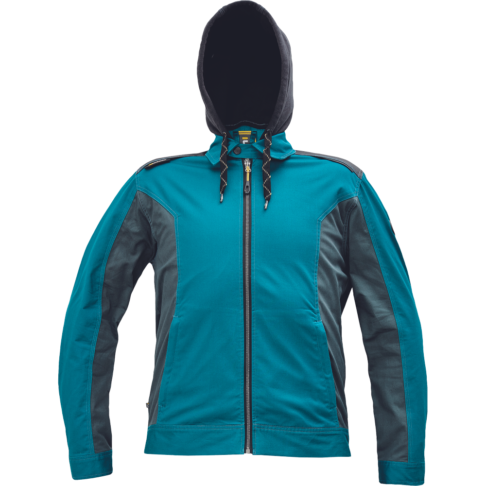 Pracovní bunda, elastický inovativní materiál TRIFIBETEX, ergonomický střih, odnímatelná kapuce, zesílená oblast ramen z materiálu Oxford, 2 postranní kapsy, 1 vnitřní kapsa na telefon, reflektivní prvky v barevném odstínu. Materiál: 62% bavlna, 35%