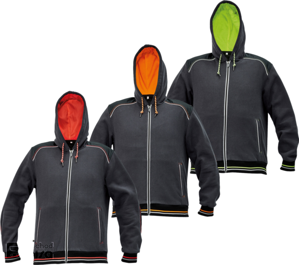 Pánská celopropínací mikina s dvojitou kapucí s kontrastním HI-VIS úpletem. Oblečení je vhodné pro práci ve většině běžných provozů.
