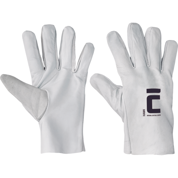 Celokožené pracovní rukavice HAWK jsou určeny pro jemnější práci a jsou vyrobeny ze světlé lícové kozinky, bez manžety.