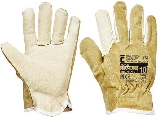 Pracovní rukavice HERON patří ke kvalitnějším celokoženým pětiprstým rukavicím z vepřové lícovky. Jsou určeny proti známým mechanickým rizikům při lehčí práci. Pracovní rukavice, dlaň a prsty z vepřové lícovky, hřbet z vepřové štípenky, bez podšívkySpecifikace pro Pracovní rukavice HERON