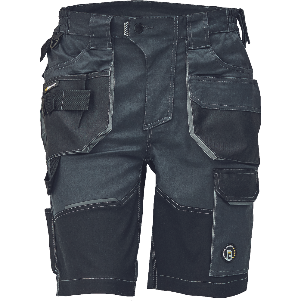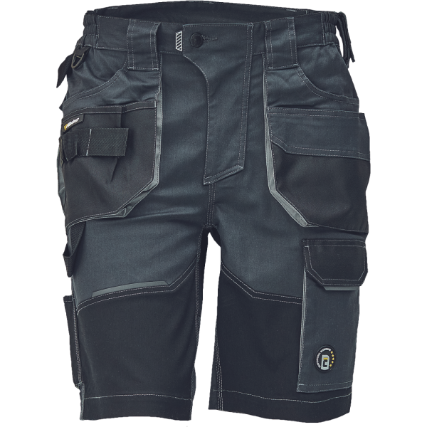 Pánské pracovní šortky.Elastický inovativní materiál TRIFIBETEX; ergonomický střih; snížený pružný pas; odolné trojité prošití nohavic a sedu; zesílená kapsa na nákoleníky z materiálu Oxford; prostorné multifunkční přední kapsy s poutky na nářadí; 2Specifikace pro Pracovní šortky DAYBORO
