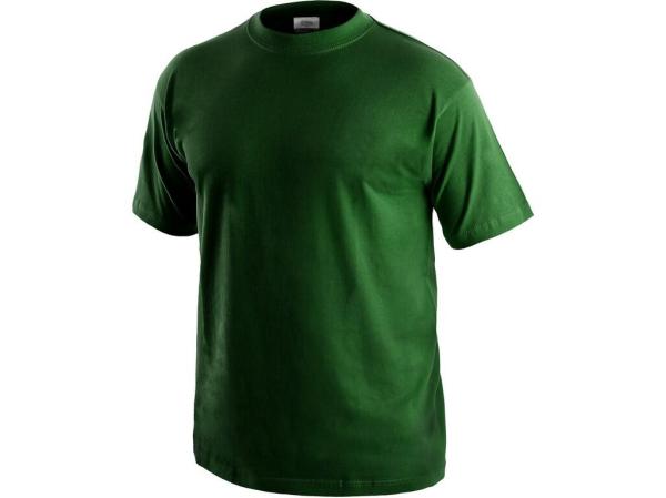 Tričko s krátkým rukávem, kulatý průkrčník, zpevňující krční ramenní páska, zdvojené švy, trup je po stranách beze švů, finální silikonová úprava materiálu, která zajišťuje vyšší měkkost a pružnost, rozměrovou stálost a omezuje žmolkovatění.