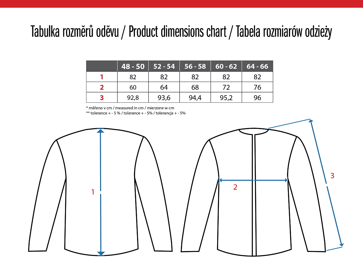 odepínací rukávy, zapínání na zip, na prsou dvě měchové kapsy uzavíratelné suchým zipem,s prodlouženou víškou 194cm.