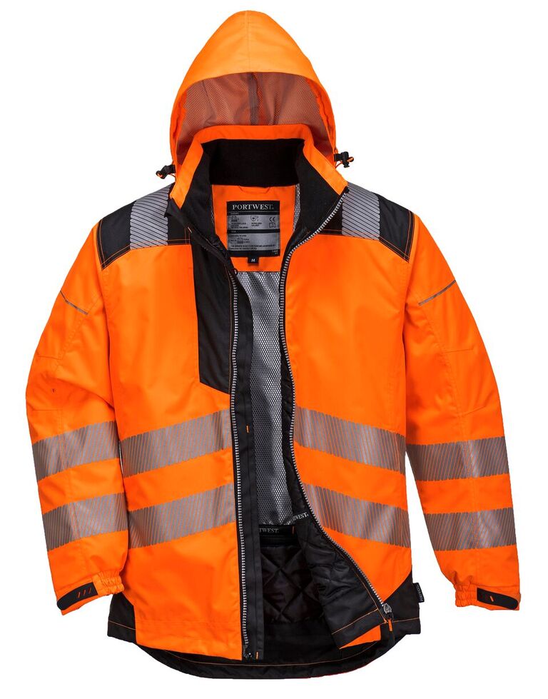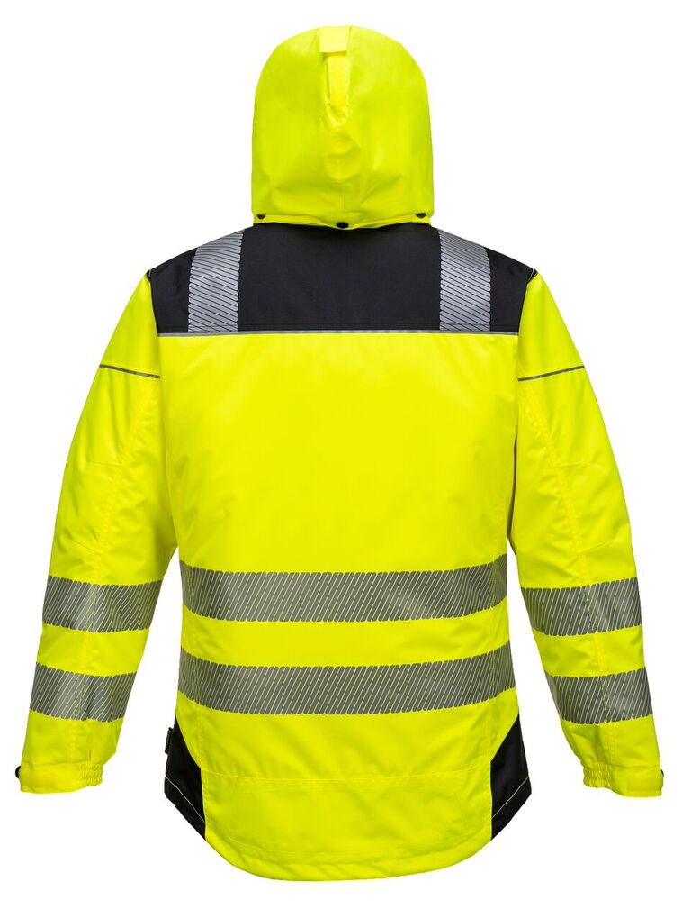 Bunda PW3 Hi-Vis Extreme Rain je vysoce nepromokavá a prodyšná. Tato bunda je vyrobena z odolné tkaniny 300D s elastickým polyuretanem potaženým oxfordem PU a má mnoho vynikajících vlastností, jako je odnímatelná ergonomicky tvarovaná kapuce, více kapes pro bezpečné skladování, technologie zipu Ezee a zipy v podpaží pro lepší prodyšnost. Moderní design a moderní sportovní vybavení kombinuje styl s výkonem.