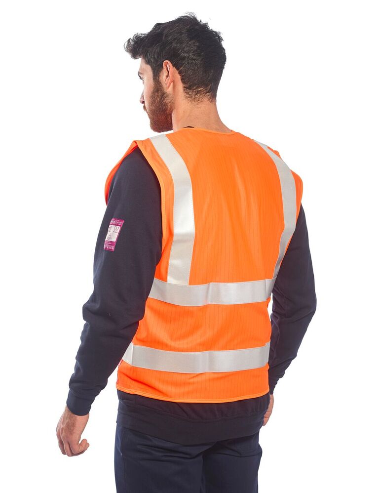 Vesta Hi-Vis Anti Static - Stříbrné reflexní pruhy široké 5 cm, lehká a pohodlná vesta je ideální pro práci v teplých podmínkách.Najděte svoji velikost
