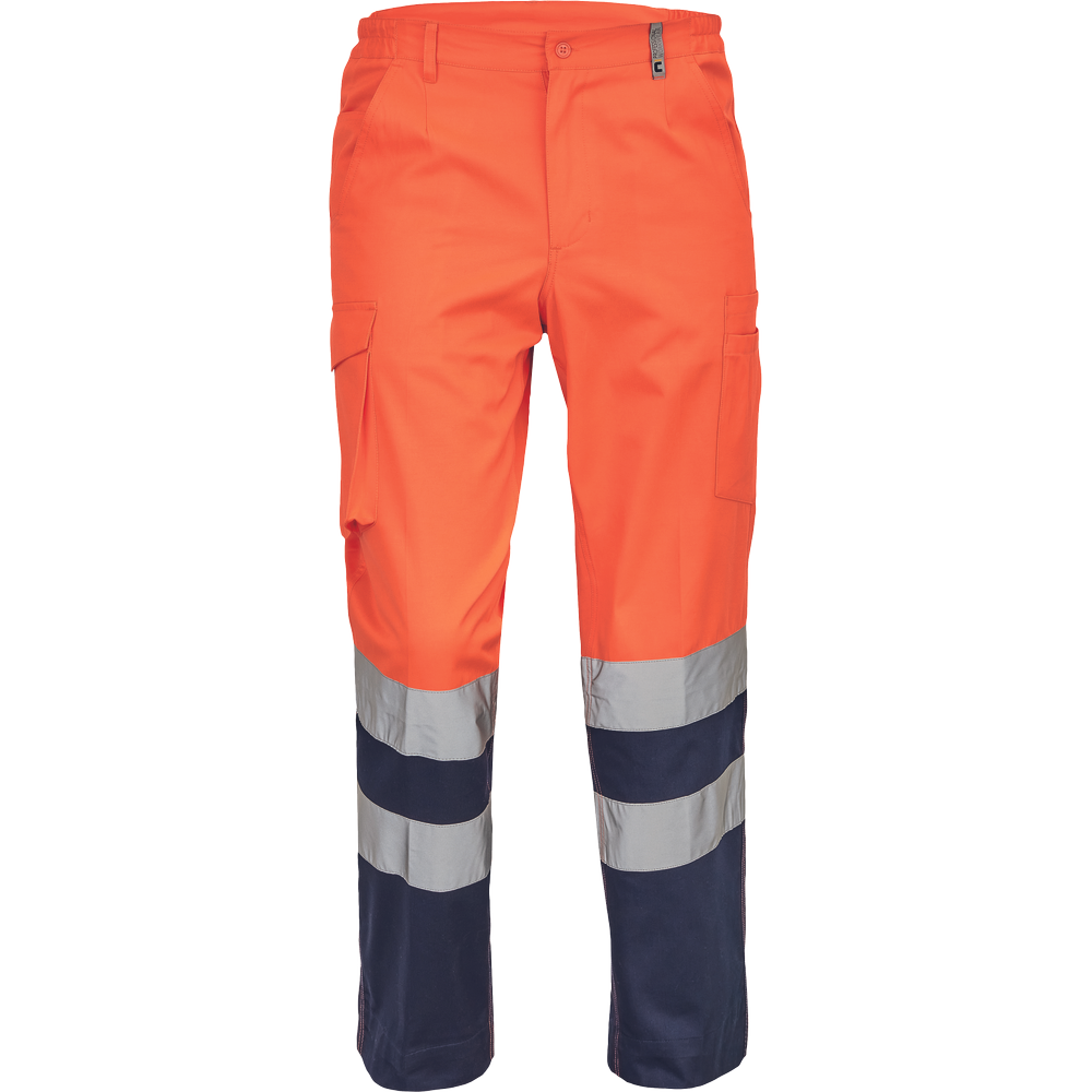 Pánské lehké HI-VIS pracovní kalhoty s reflexními pruhy, elastický pas; 2 postranní kapsy, 1 kapsička na mince; 2 stehenní kapsy, 2 zadní kapsy.