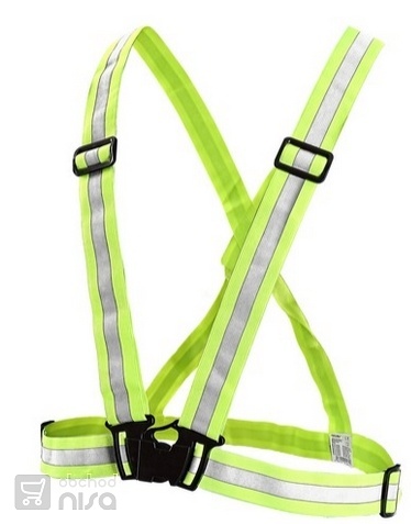 Elastický kříž, šíře 4cm, 1,3cm reflexní pasky, nastavitelná šířka i délka pásů na sponu. Tento produkt splňuje evropskou normu pro výstražné doplňky pro neprofesionální použití EN 13356.