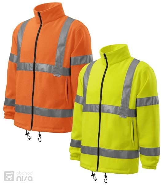 Mikina z fluorescenčního materiálu s hlavicovým rukávem. Použity certifikované retroreflexní pruhy výrobce 3M.