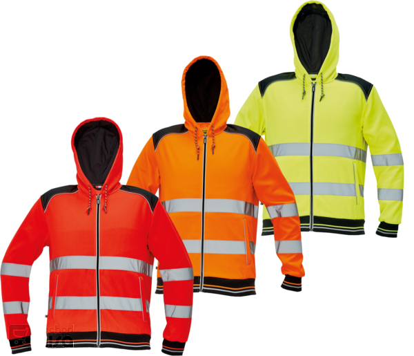 Pánská celopropínací mikina s dvojitou kapucí v HI-VIS provedení. Pružné náplety na rukávech a spodním obvodu. Oblečení je vhodné pro práci ve většině běžných provozů.