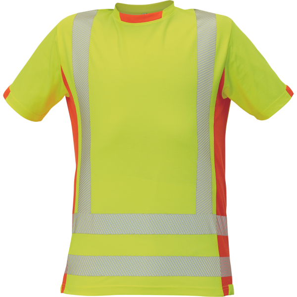 Kvalitní pánské tričko v atraktivním provedení kombinace dvou HI-VIS barev; segmentované tištěné reflexními pruhy přes ramena a okolo boků.