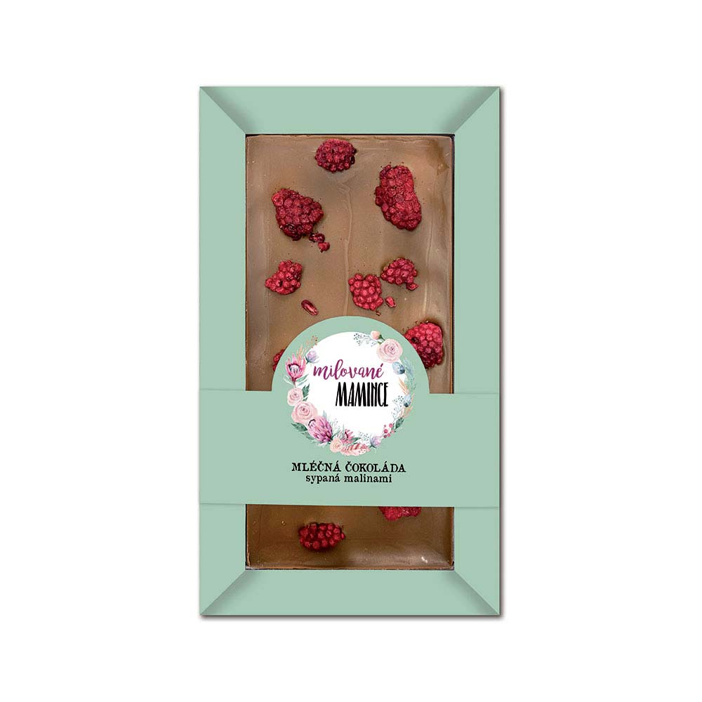 Dárková sypaná mléčná čokoláda 80 g s malinami – milované mamince
