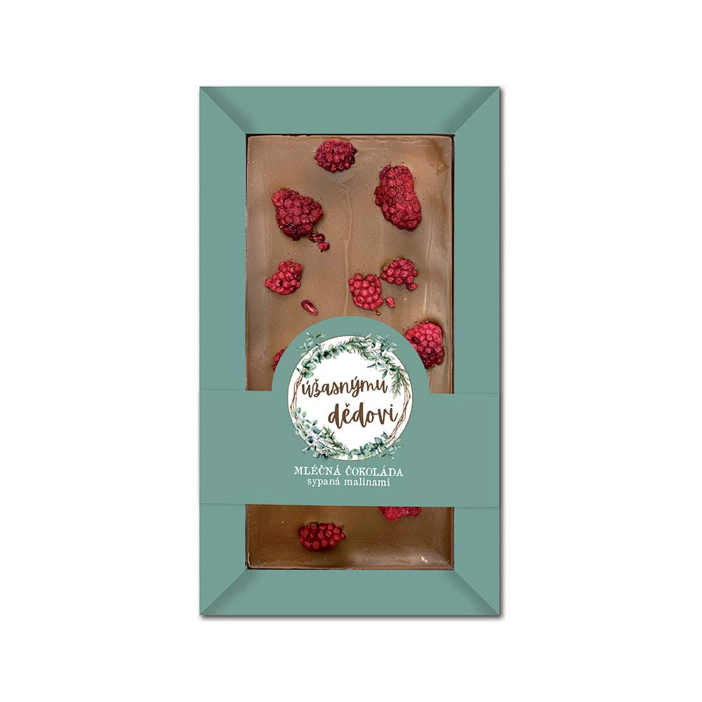 Dárková ručně vyráběná mléčná čokoláda 80 g s malinami – pro dědečka