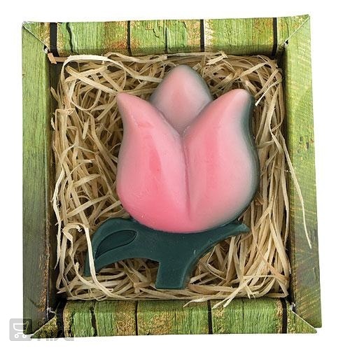 Tvarované 3D mýdlo - tulipán. Dárkové balení v krabičce.