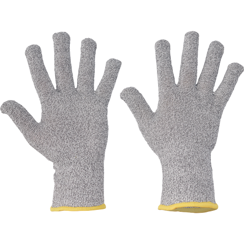 Pletené, bezešvé rukavice z modifikovaného skleněného vlákna, Spandexu a nylonu, s odolností proti prořezu.
