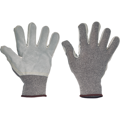 Pletené, bezešvé rukavice z modifikovaného skleněného vlákna, Spandexu a nylonu, se zesílením z hovězí štípenky v dlani a na prstech a odolností proti prořezu.