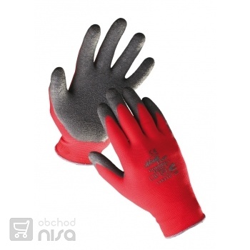 Pletené, bezešvé, nylonové rukavice (15GG), s nanesenou pružnou gumou v dlani a na prstech a pružnou manžetou, č. 6" - 10".