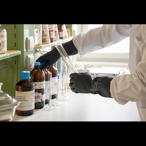 Materiál:Materiál rukavice: neoprenPopis:Rukavice z 0,7 mm silného neoprenu, s velurem uvnitř a reliéfním povrchem na dlani a na prstech.Normy:EN 420EN 388 (3131X)EN ISO 374-1 (typeA A3 K6 L5 M6 N5 O4)EN ISO 374-5Vlastnosti:Typ manžety: slip-onDélka: 33 cm