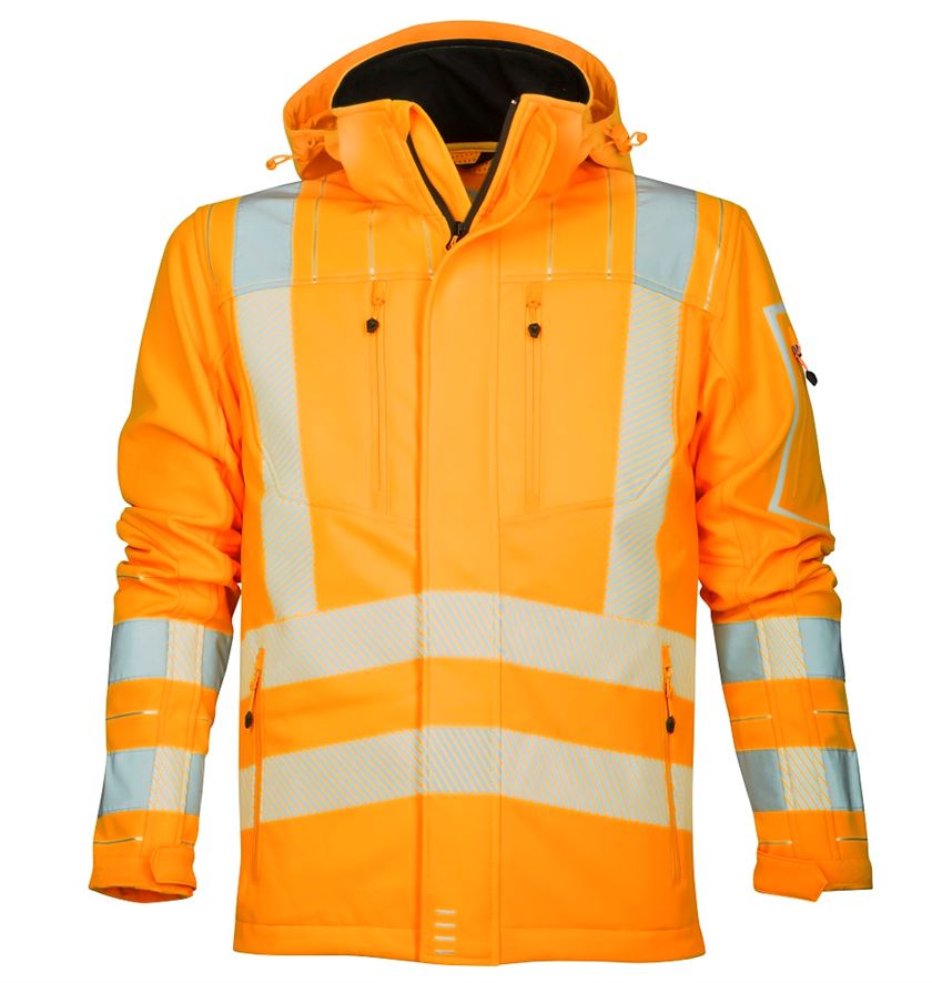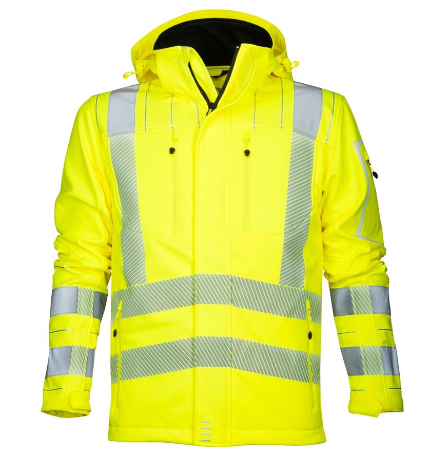 Luxusní pánská softshellová bunda výstražné kolekce SIGNAL s dekorativními reflexními potisky na sedle a rukávech.Najděte svoji velikost
