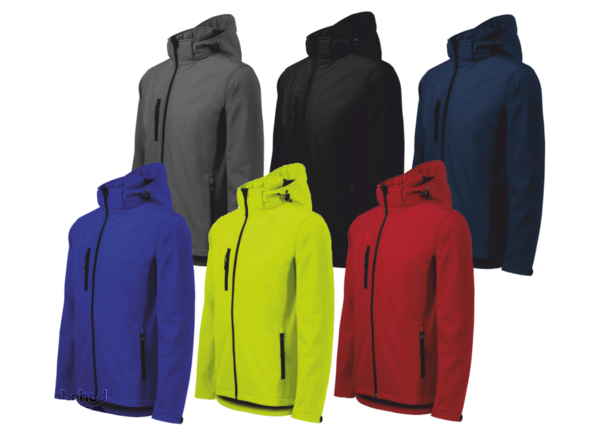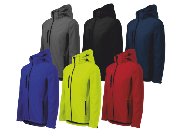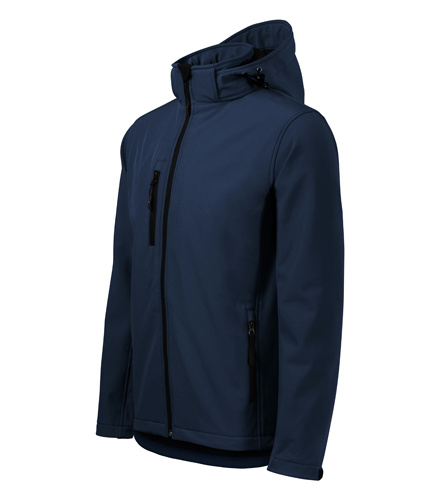 Prodyšná pánská softshellová bunda odolná proti dešti a větru s odnímatelnou kapucí. Prodloužený zadní díl.