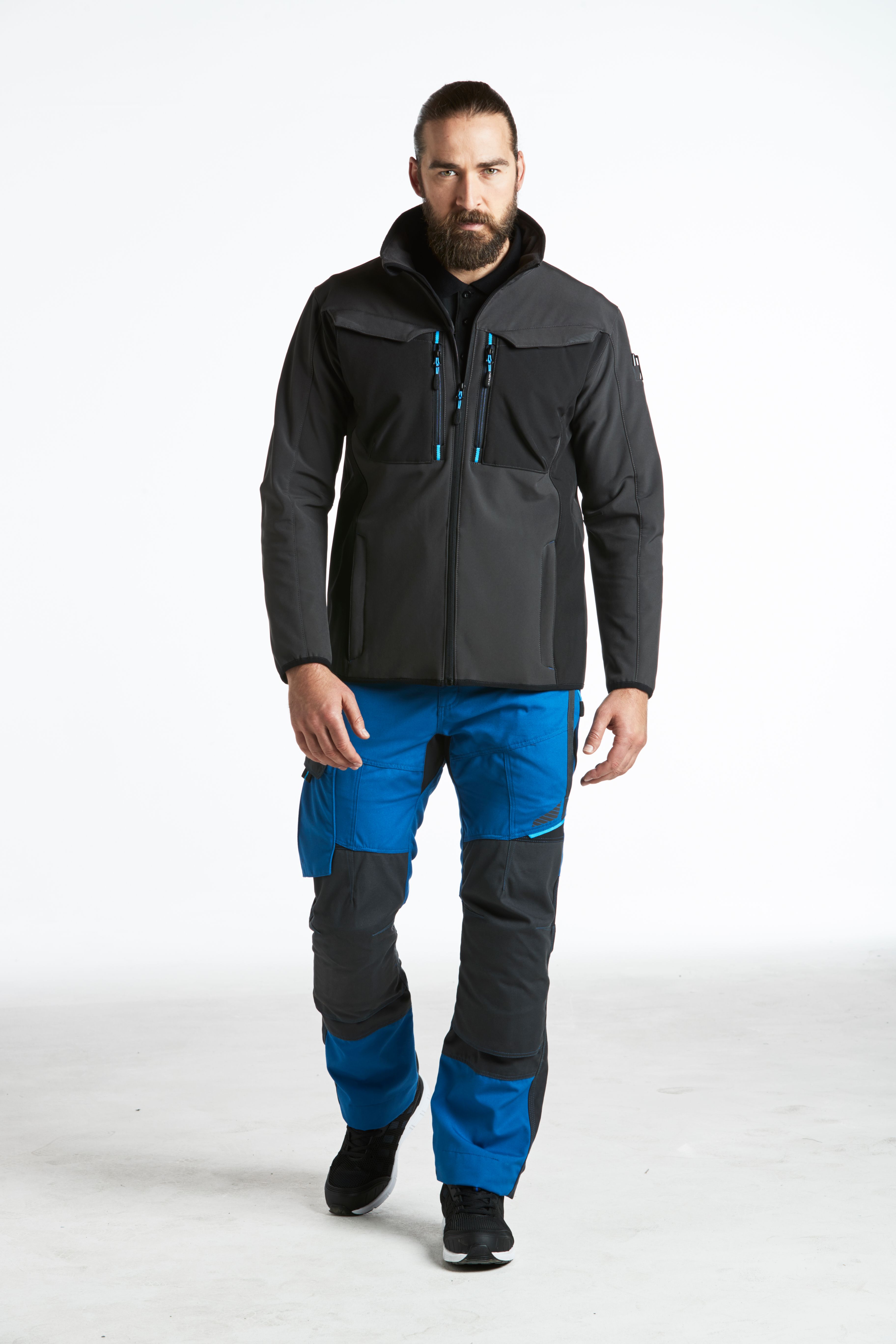 Softshellová bunda, která je odolná proti větru, je voděodolná s prodyšnou membránou s přidaným mikrovláknem. Chytré funkce zahrnují technologii Ezee Zip, předtvarované lokty, reflexní ozdoby a více kapes.