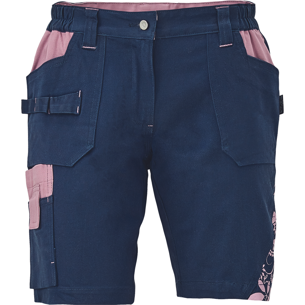 Dámské šortky s elastickým pasem pro celodenní pohodlné nošení; 2 boční kapsy s poutky; 1 zdvojená stehenní kapsa.